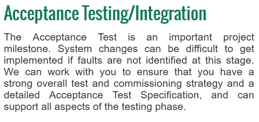 • Acceptance Testing / Integration